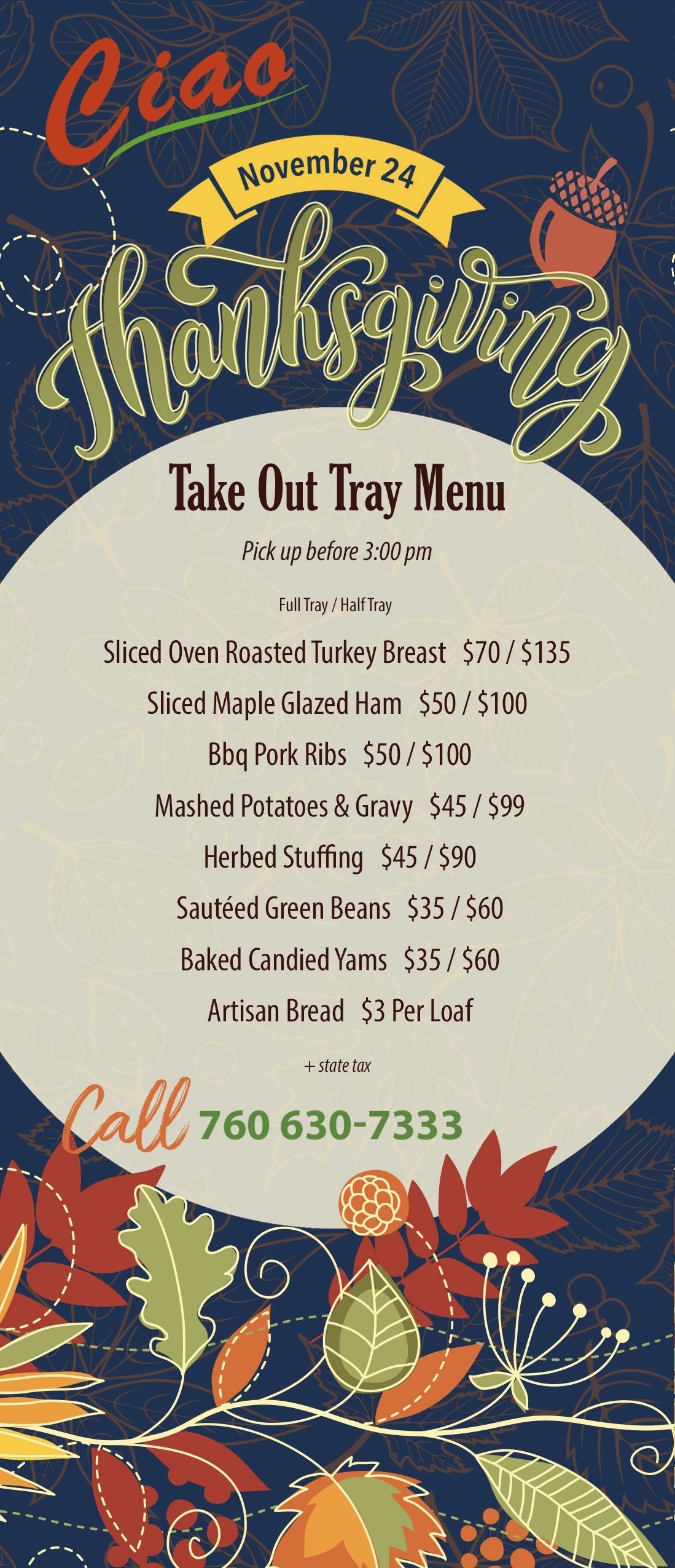 Located on the outskirts of San Diego County, in a quiet part of Vista, Ciao Ristorante Italiano is one of the area’s finest Italian Restaurants complete with two chefs, a full bar, and an elegant Mediterranean ambiance . As a second generation family business, Ciao is focused on upholding traditional values and high service standards. Whether it is for a romantic dinner, a private event, or to pick up a tray of pasta, our guests always leave satisfied.