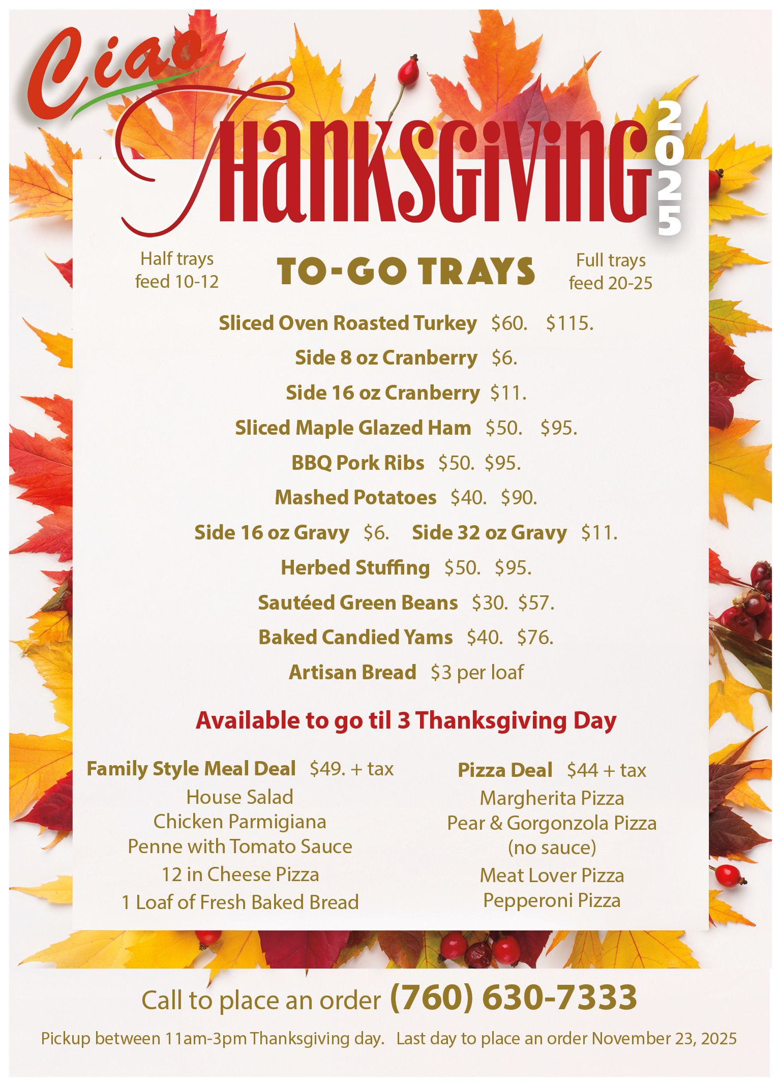 Pick Up Party Trays Menu
